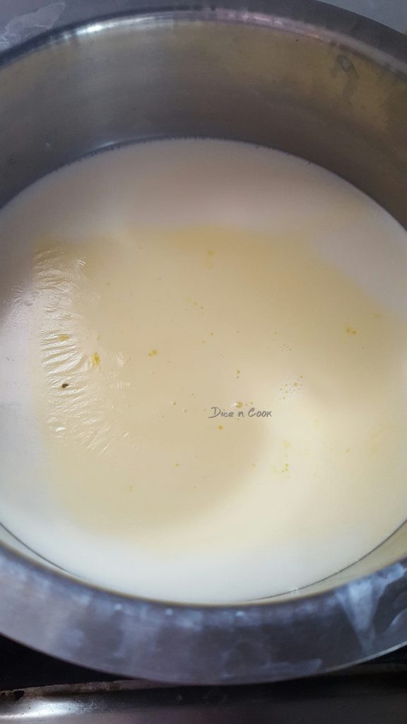 - Heat full fat milk in a vessel. As it starts to boil, add citric acid, mix gently until all the curdled mixture settles at the top leaving the whey behind.
