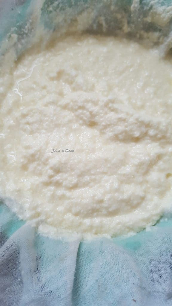 - Remove the water content from the curdled mixture or cheese by hanging for 15 minutes.
