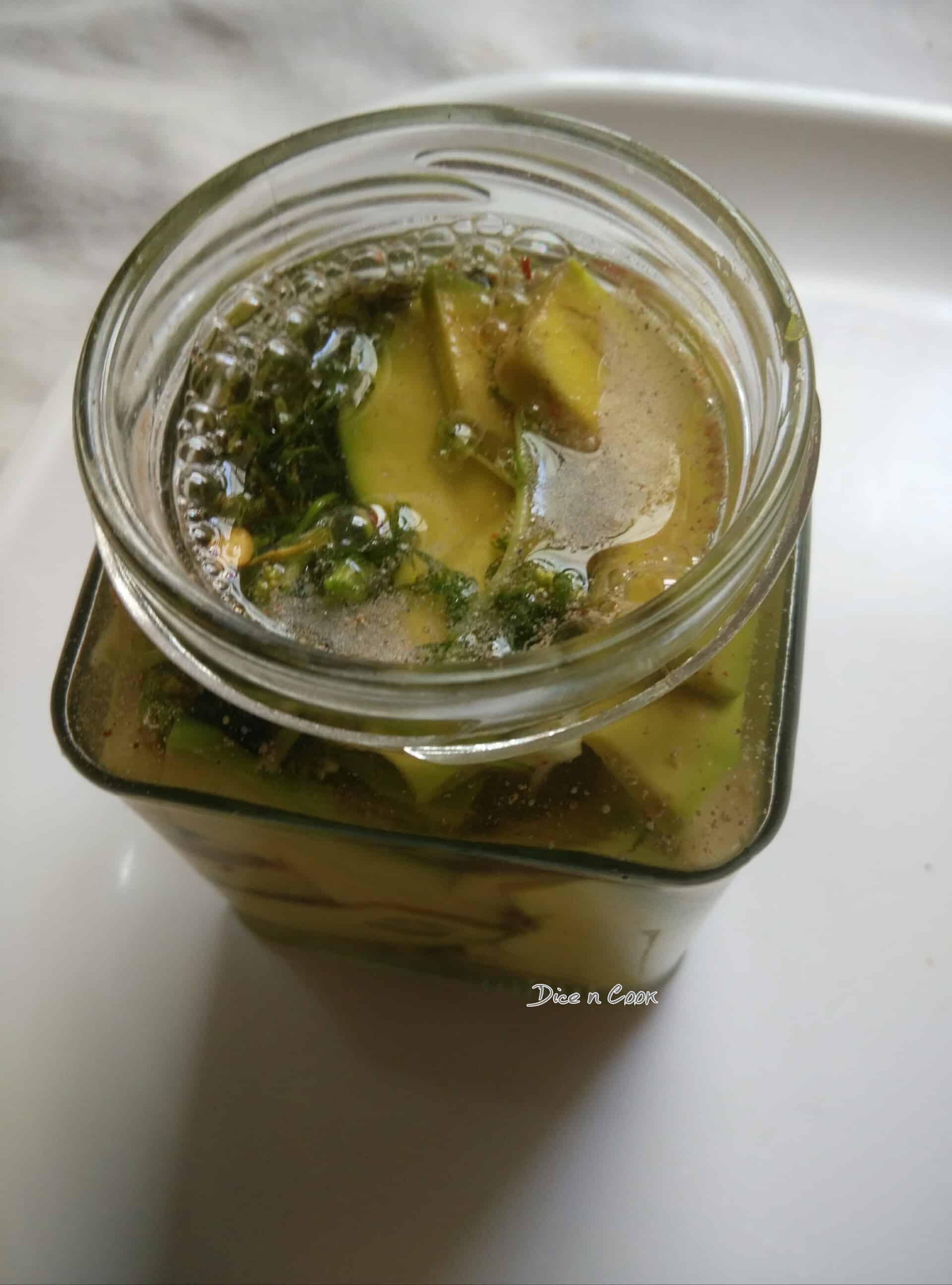 Half ripe slightly firm avocado should be used for crunchy pickles.