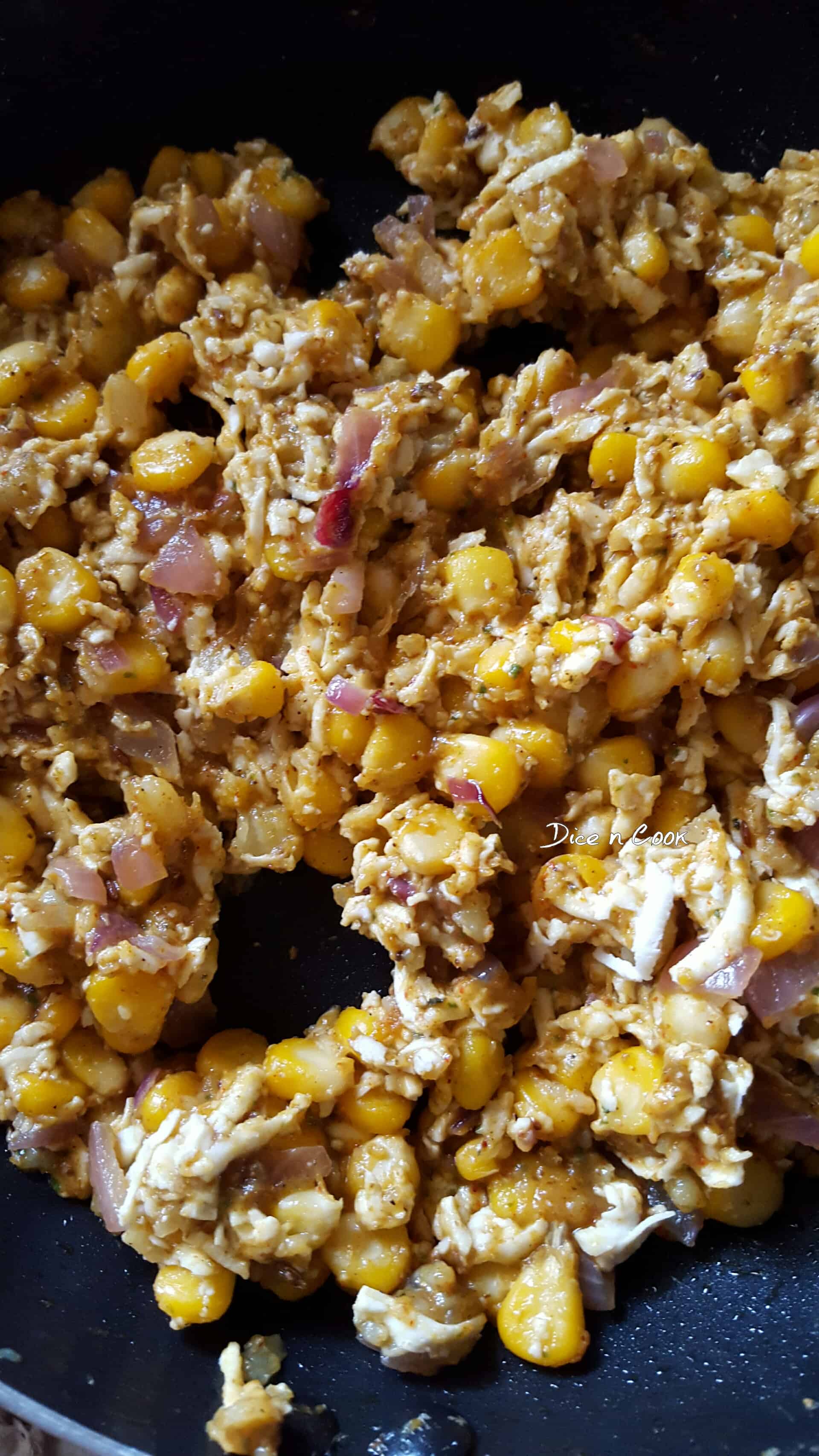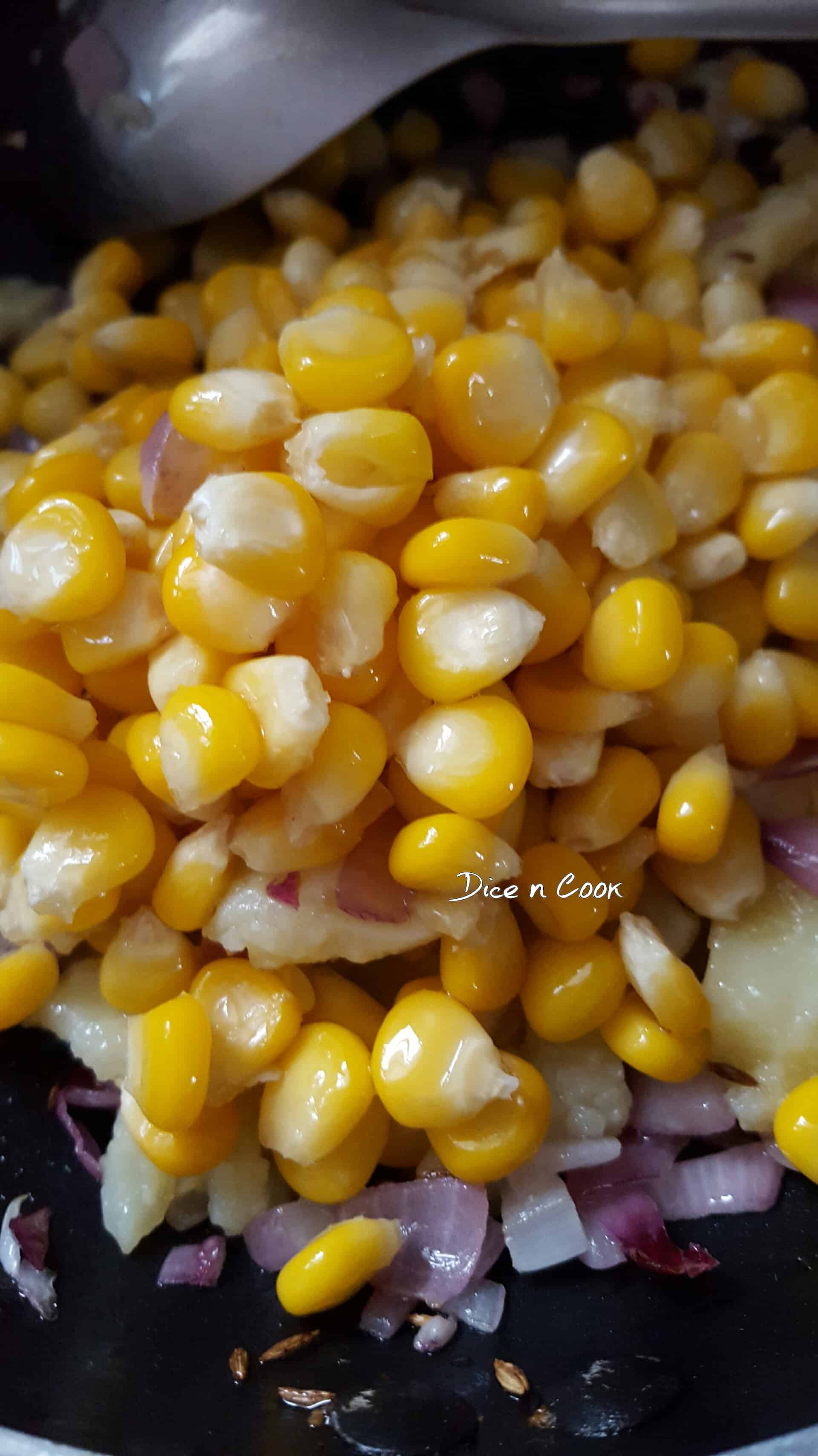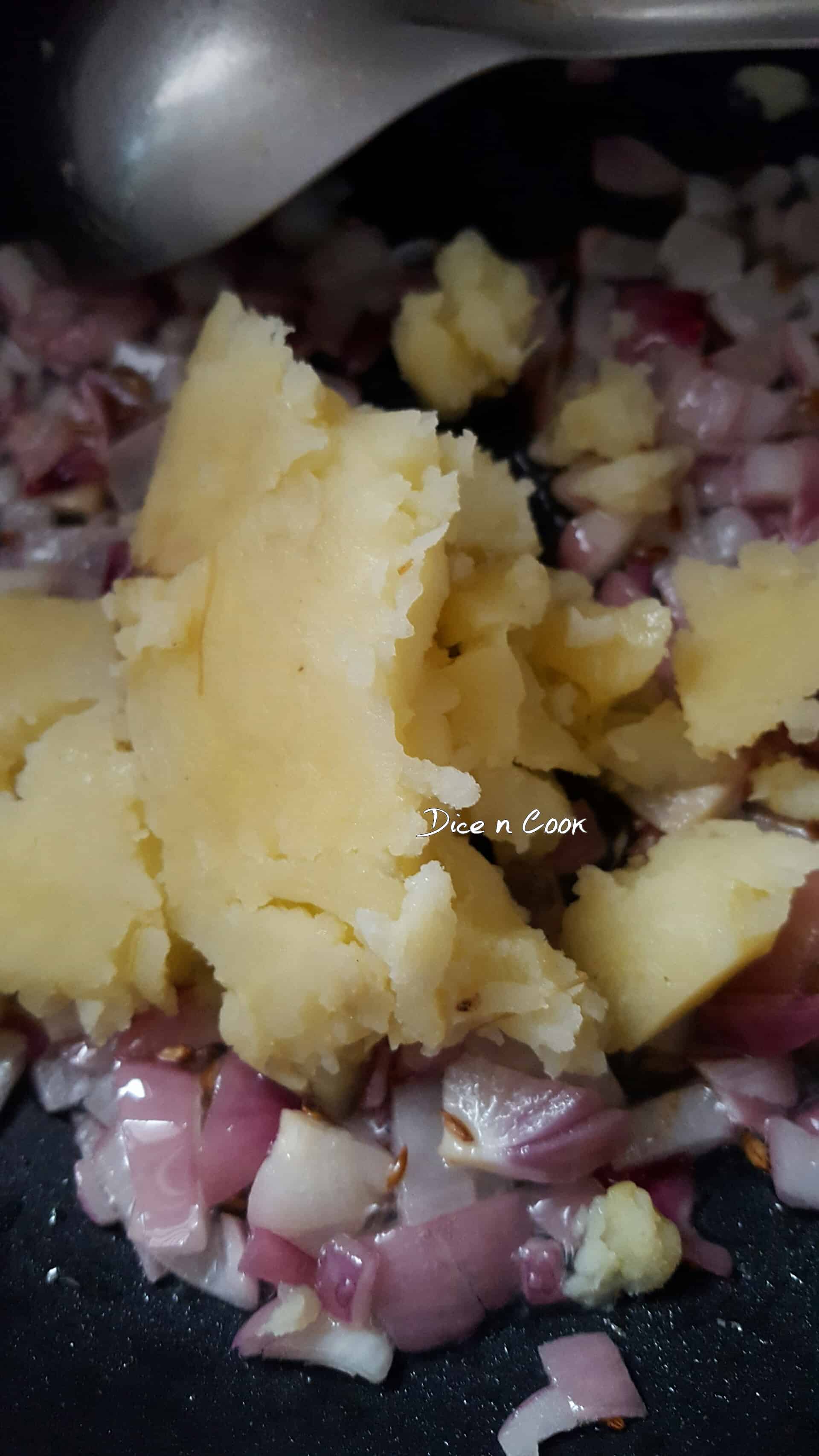 - Now add grated paneer, mix well and cook for 1 minute. Cool this stuffing mixture.