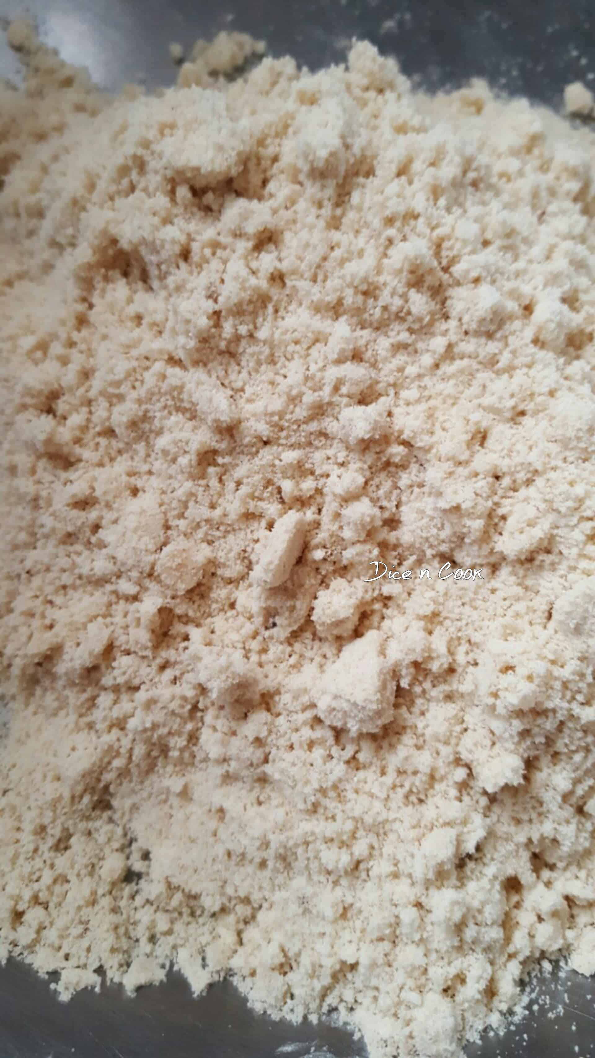 - Now add hot oil and rub the flour with fingers to form bread crumbs.