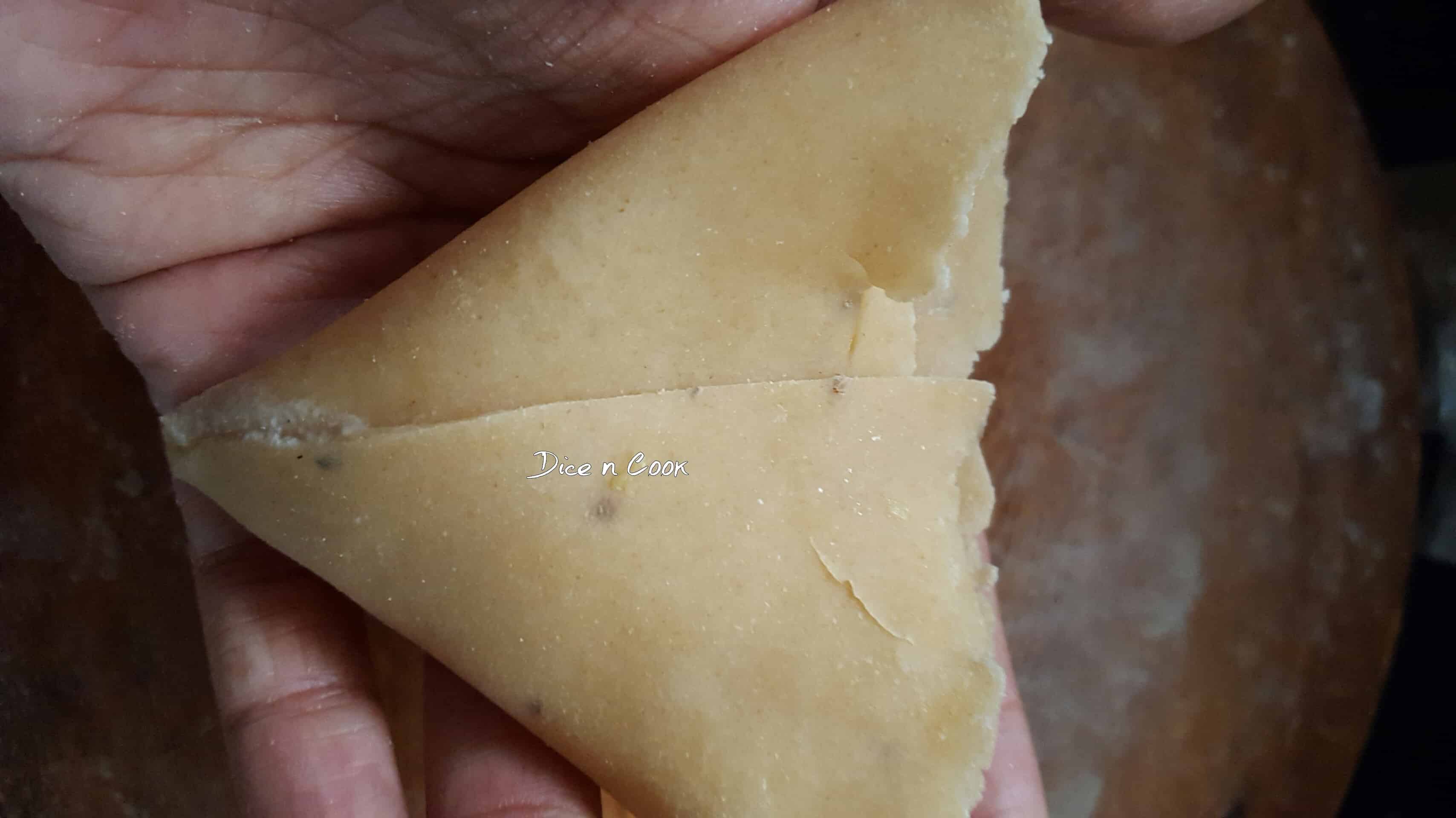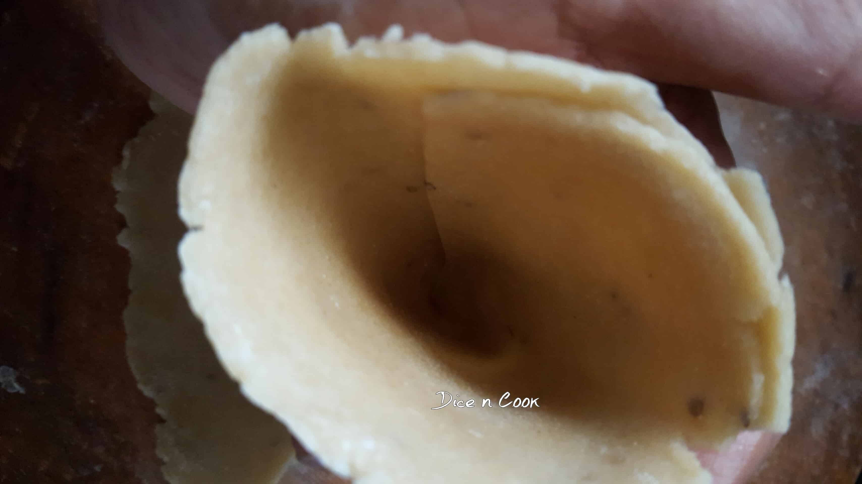 - Cut them into half, take one half, fold into cones, wet the edges with water.