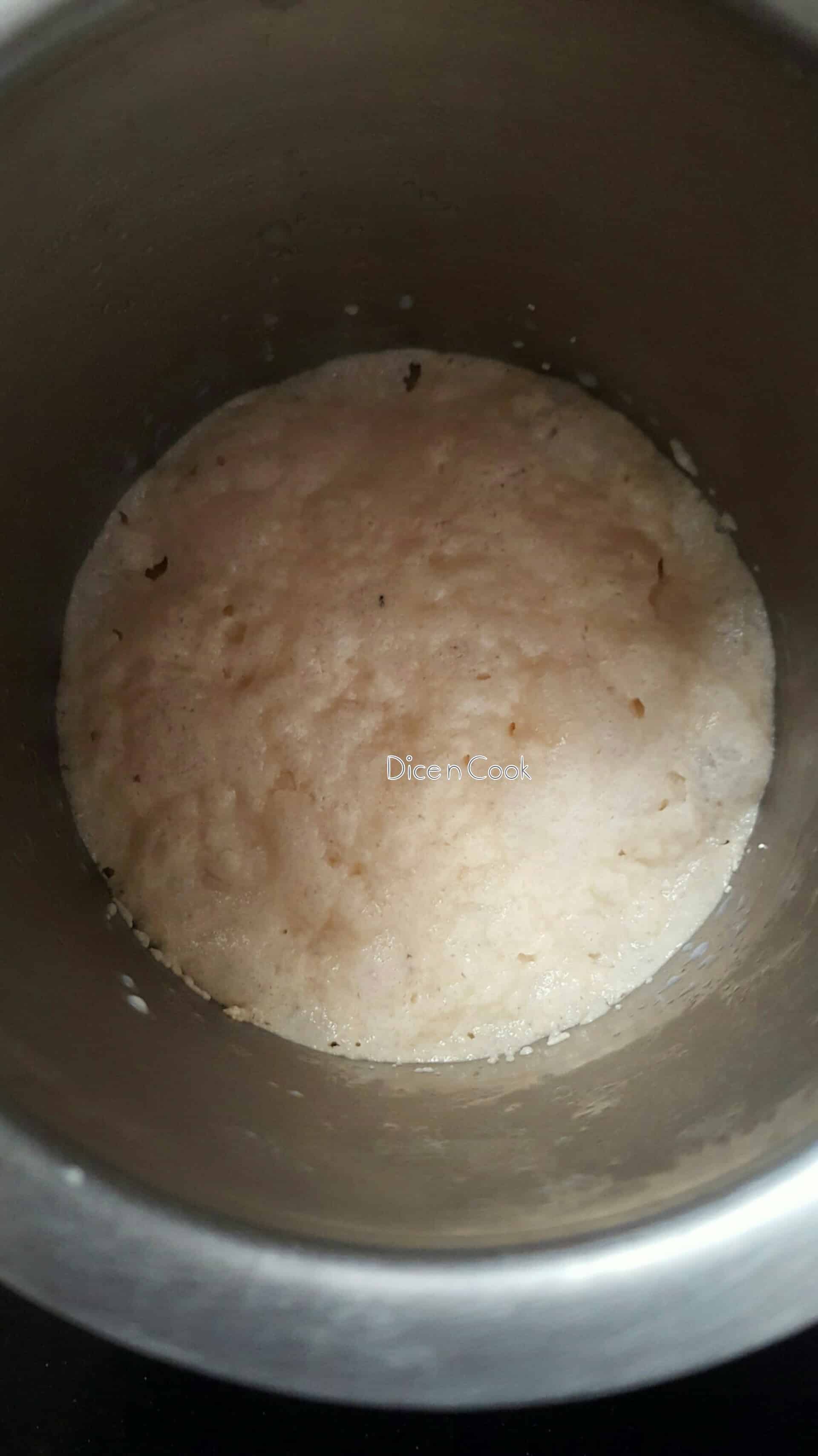 - Now add the bloomed milk yeast mixture to the flour. Add butter to this. Mix well to form sticky dough.