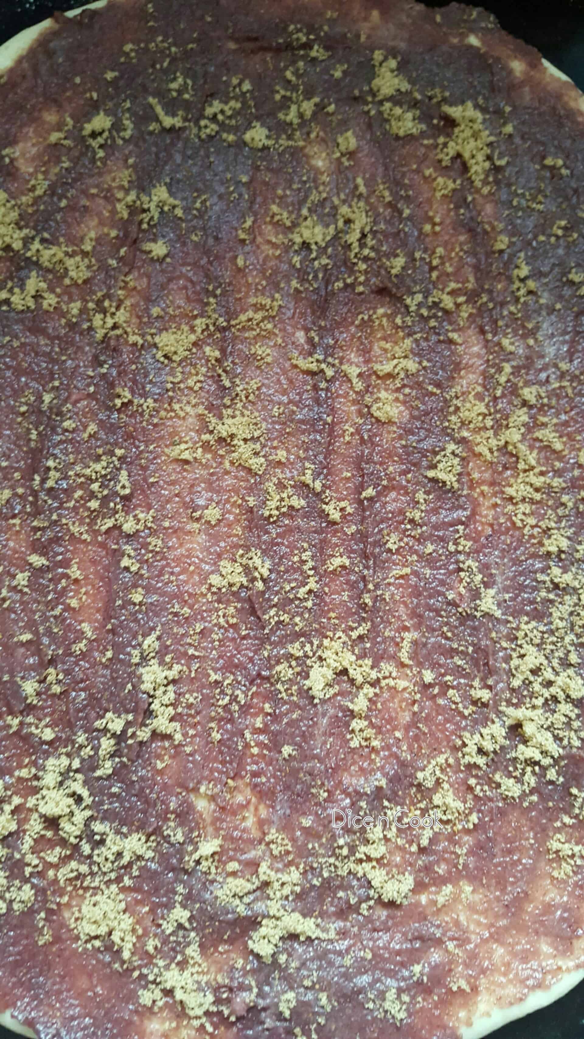 - Now sprinkle cinnamon and cane sugar mixture evenly.