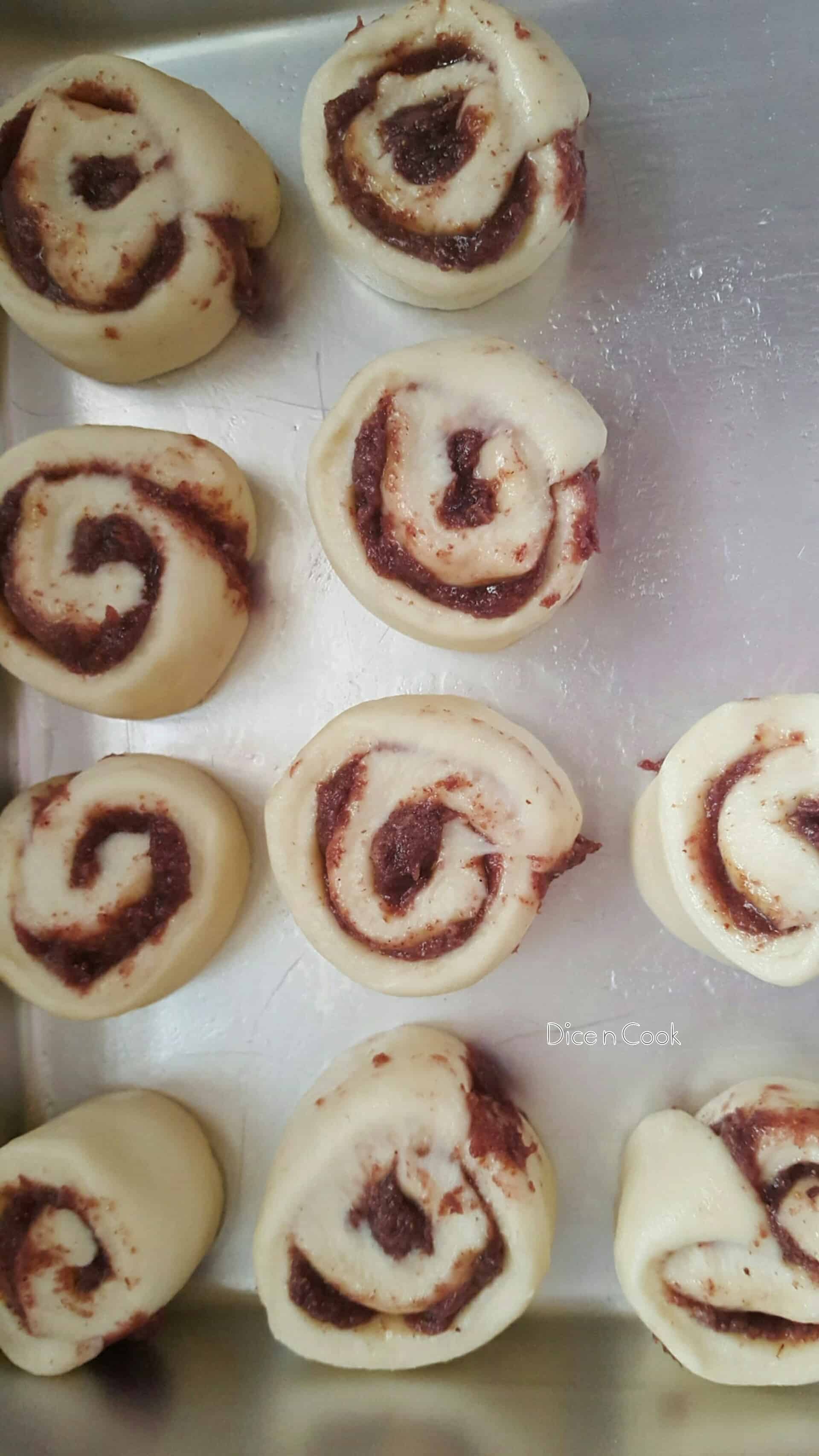 - Place these rolls with concentric circles facing upwards on a greased baking tray.