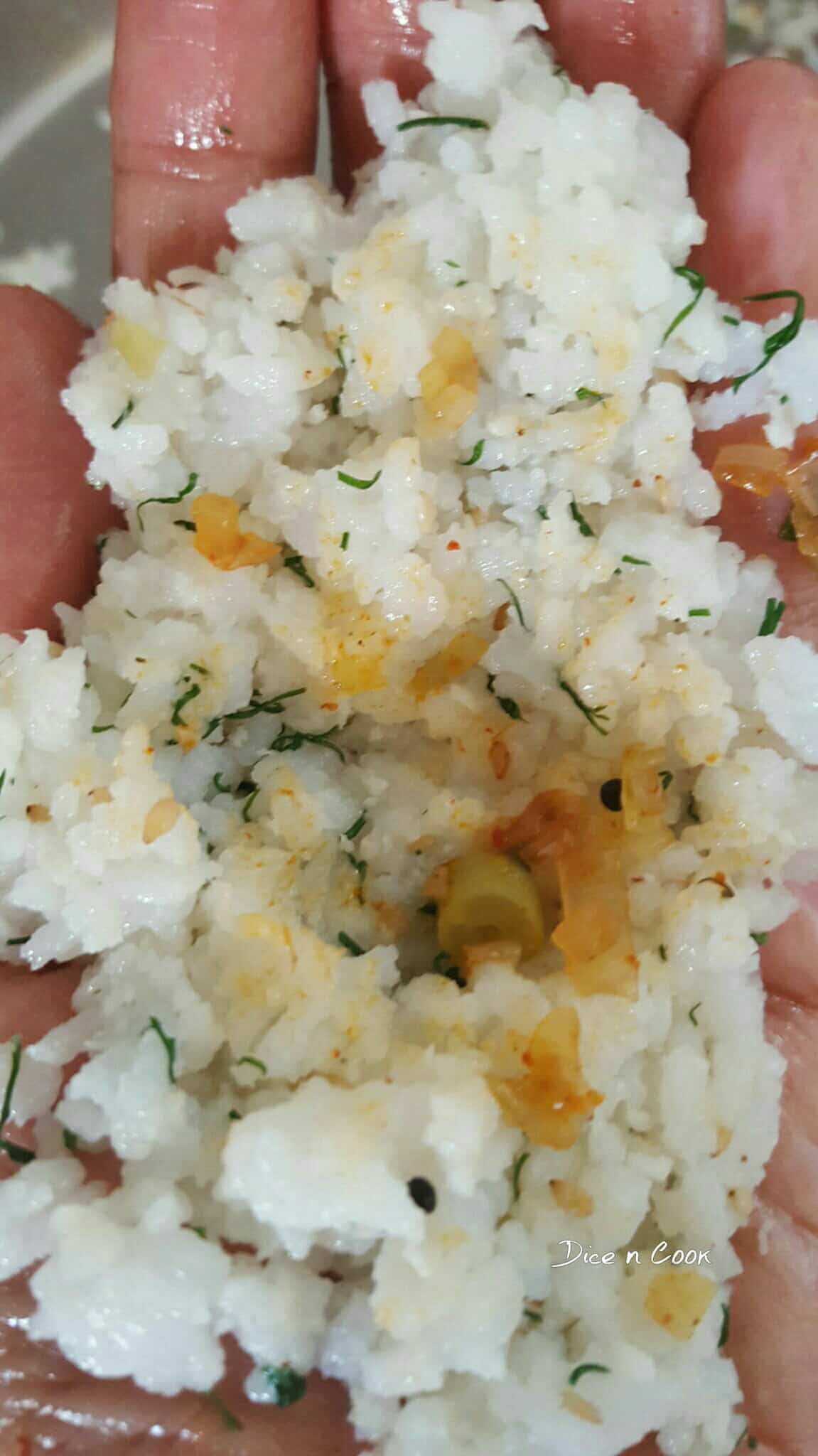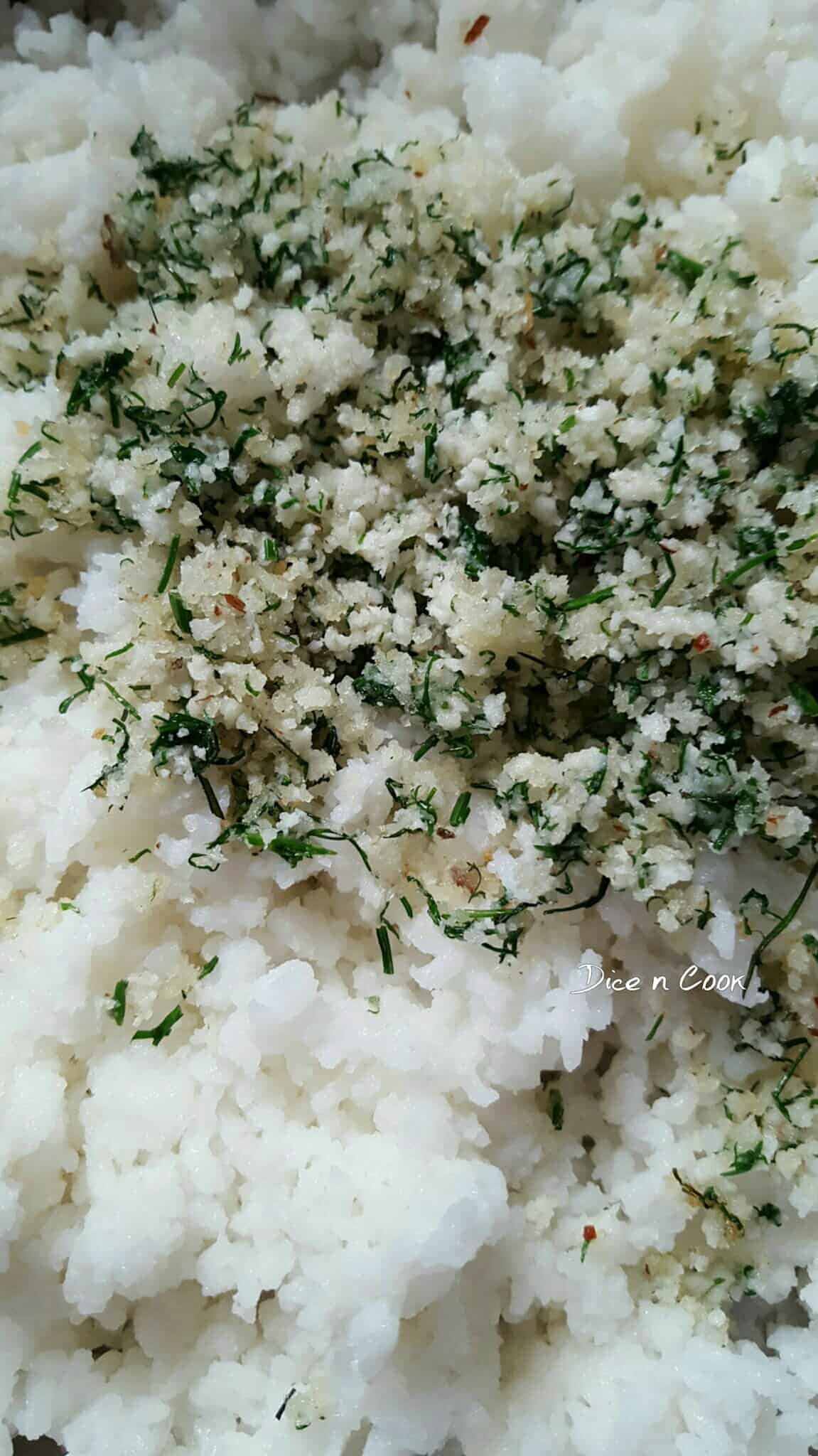 - Mix this roasted coconut dill leaves, sesame seeds with little salt to the cooked rice. Keep this ready for further use.