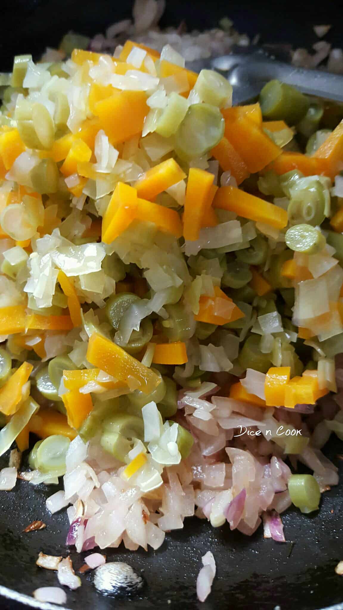 Veggies (I have used finely chopped and cooked beans, carrot, cabbage) – 1 cup