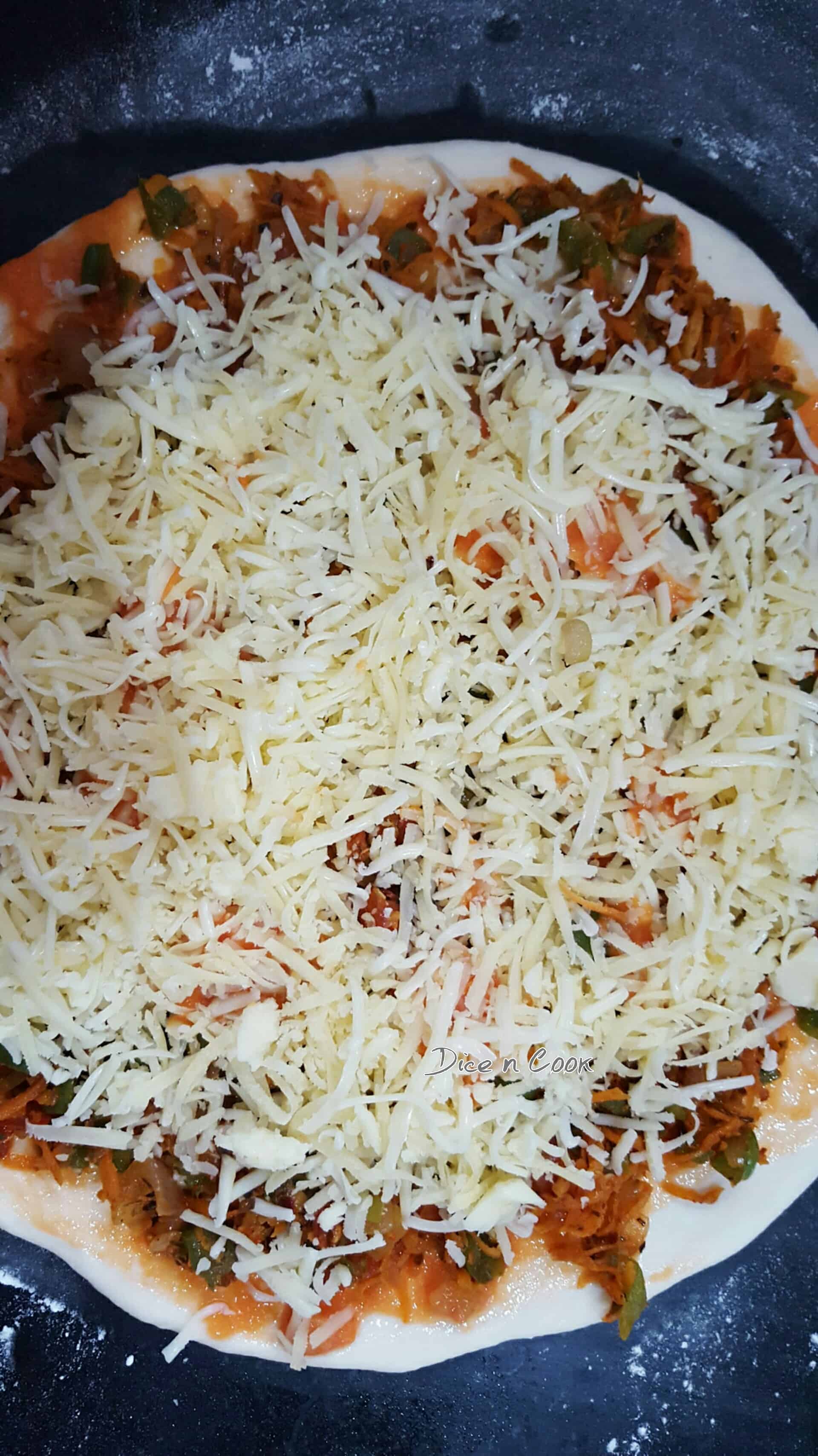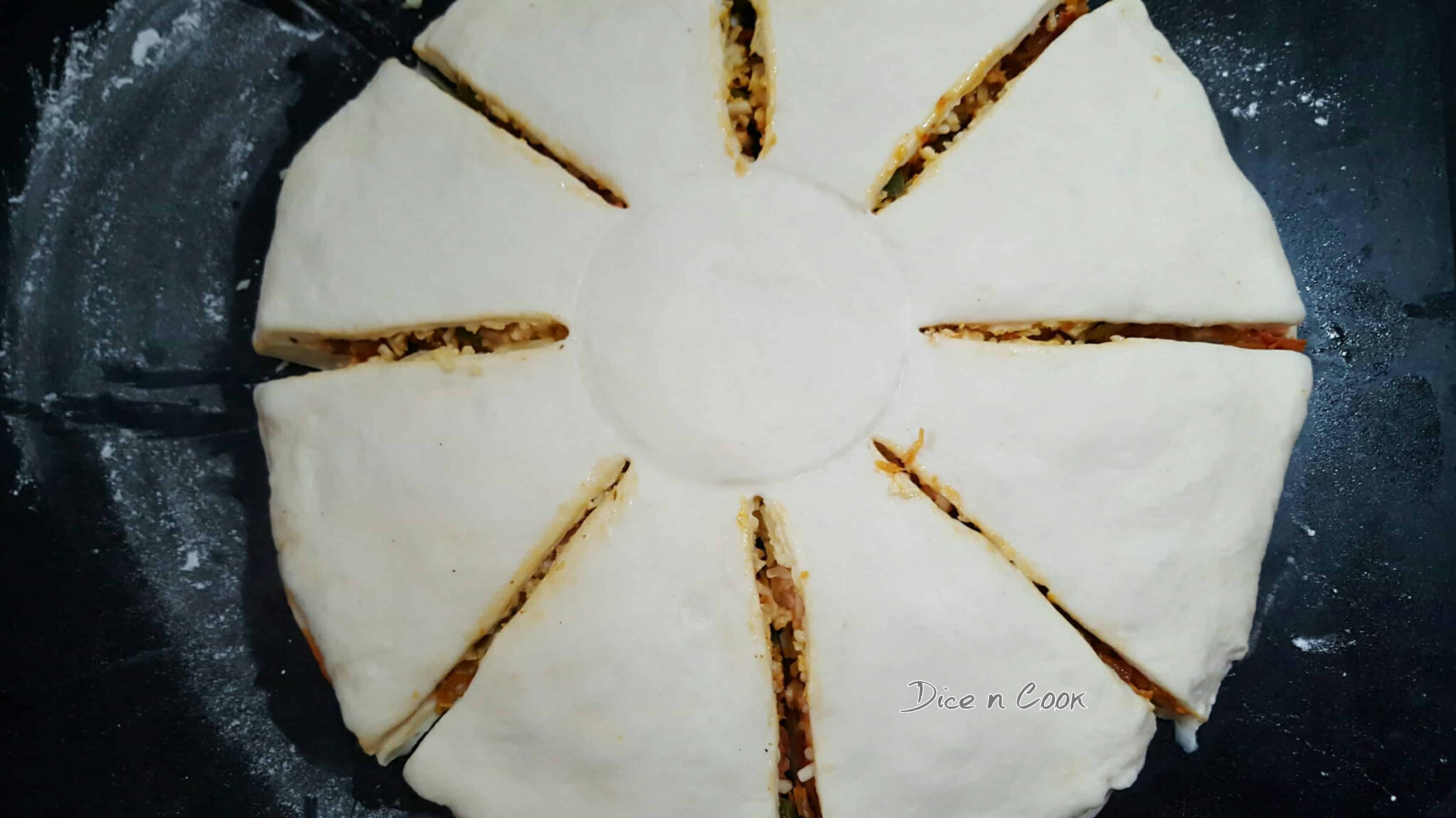- Grease a baking tray with oil and keep this dough sheet on the tray.