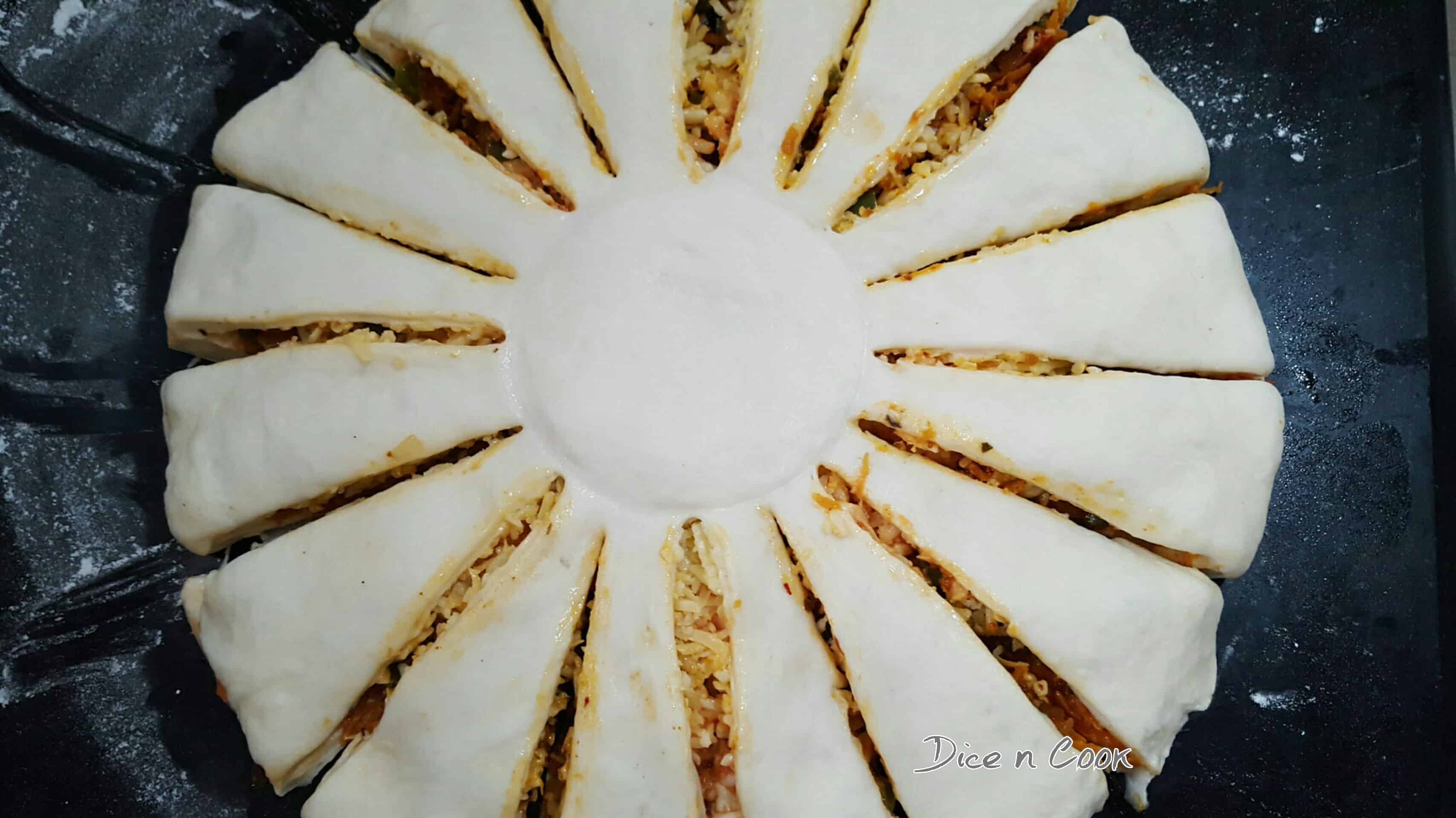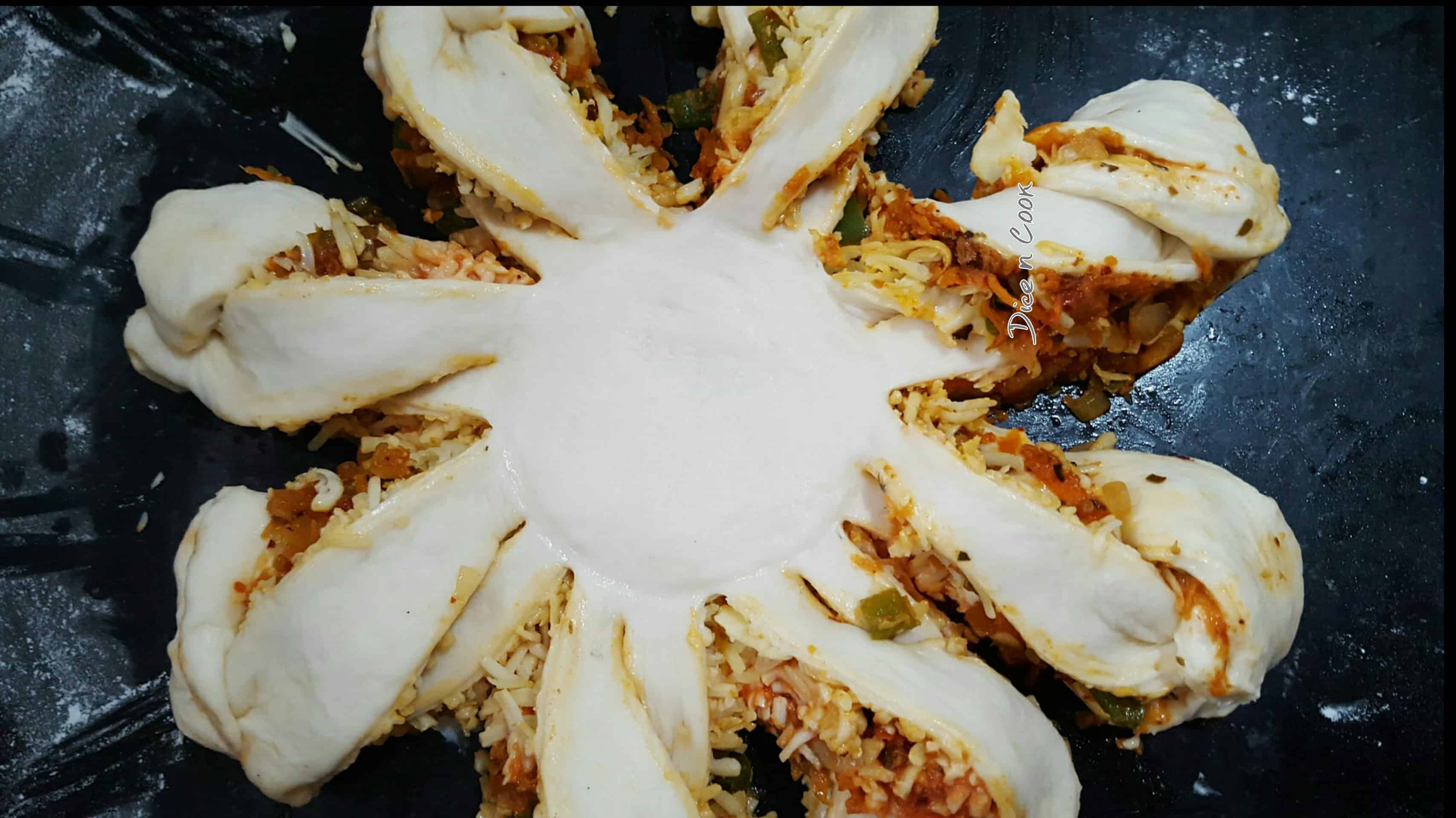 Stuffed pull apart pizza are super easy to prepare and great snack of interest to kids. Just roll the dough, apply some pizza sauce, stuff the veggies of choice with cheese, cover with dough and bake. It’s so simple!!! Here I have used sprig genoa multipurpose spice mix which is a medley of Italian herbs and spices giving the true burst of Italian flavors. It can be used for grilling, frying, roasting, stewing, steaming, braise, barbecue. You can just make this for parties, dinner or any special occasion. The smell from oven is heavenly. It is so cheesy and tasty with bust of flavors in every bite.
